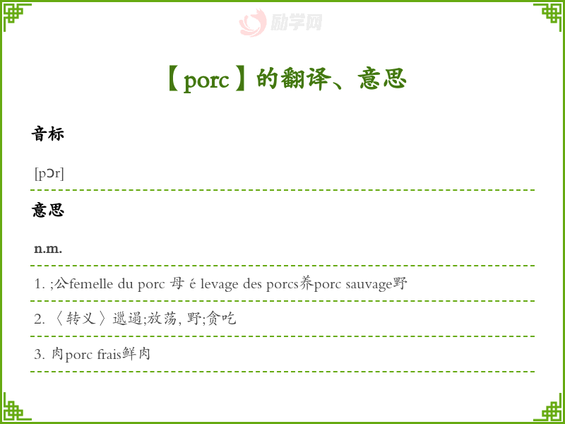 【porc】 联想 名词变化: 形容词变化: 近义词 同音、近音词 联想词