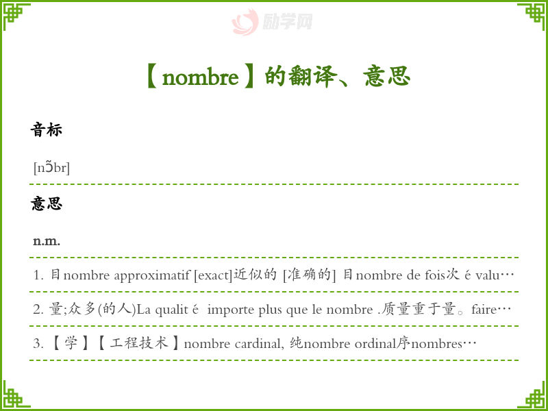 nombre法语的中文翻译、意思