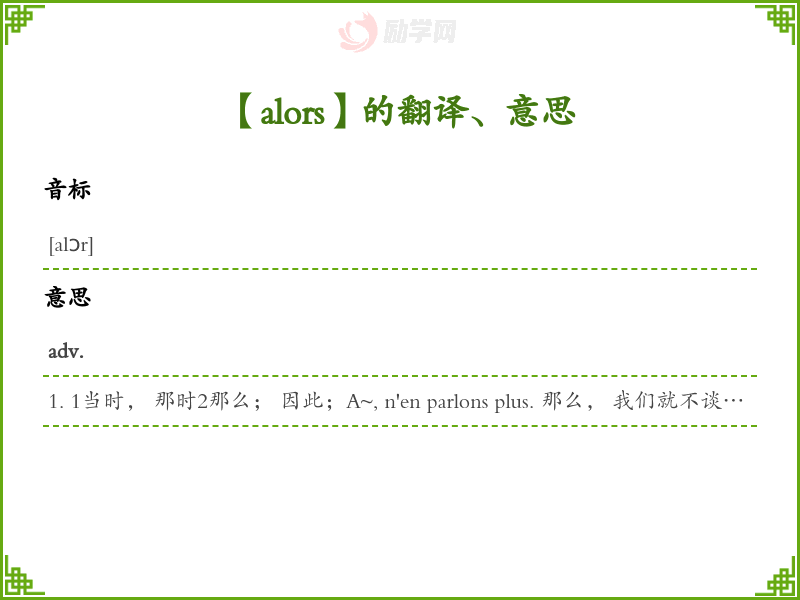 【alors】是什么意思、字义解释