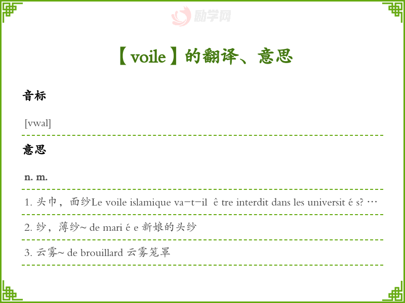 voile法语的中文翻译、意思