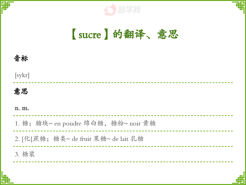 sucre法语的中文翻译、意思