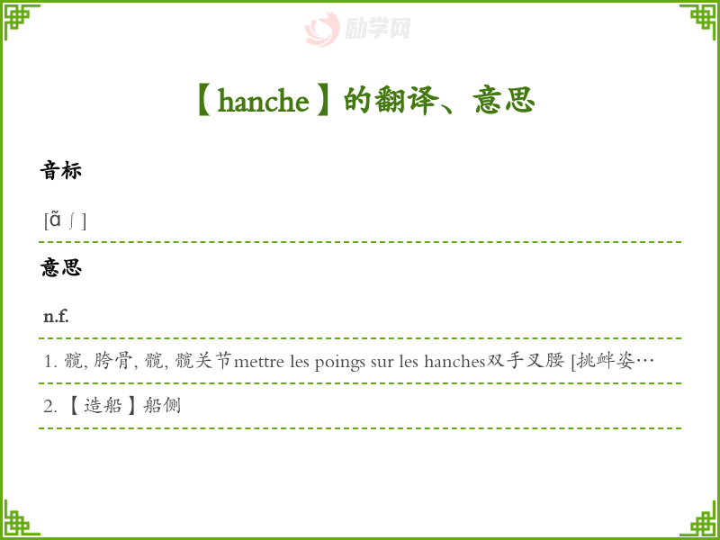 hanche法语的中文翻译、意思