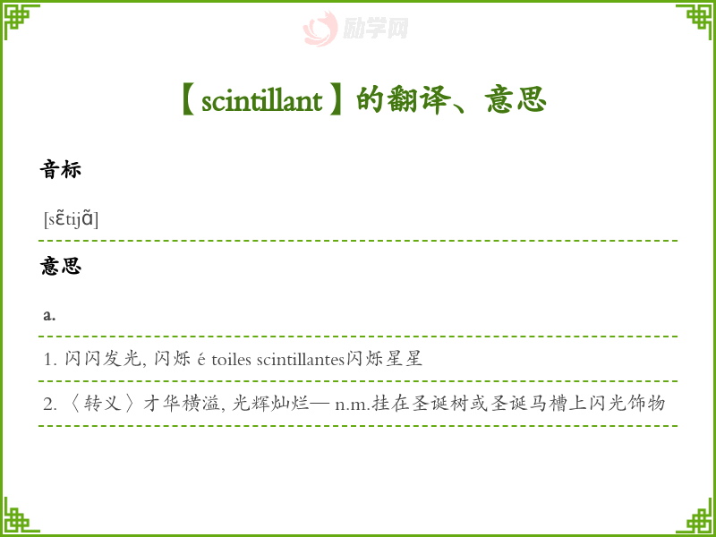 scintillant法语的中文翻译、意思