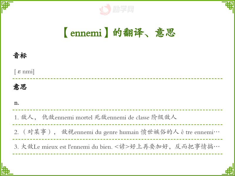 ennemi法语的中文翻译、意思