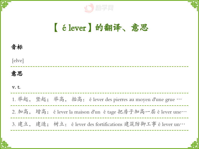 élever法语的中文翻译、意思