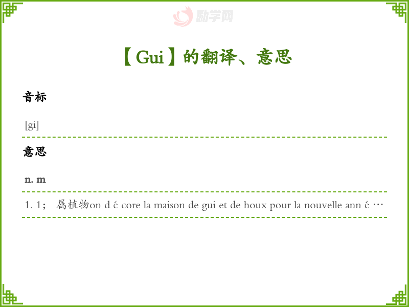 1. 1; 属植物on décore la maison de gui et de houx pour la nouvelle année 人们为庆祝新年用和骨叶冬青装饰房屋。2后桅驶风杆