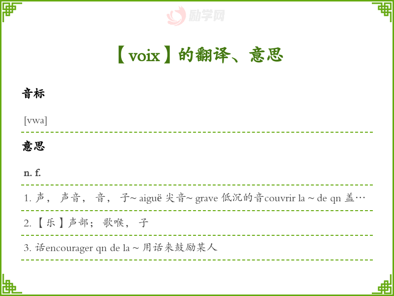 voix法语的中文翻译、意思