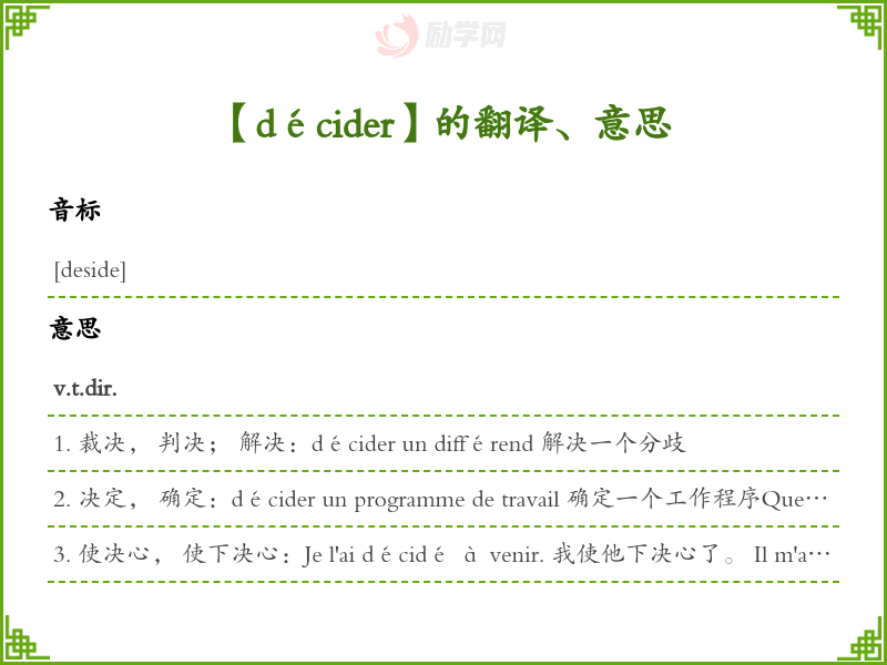 décider法语的中文翻译、意思