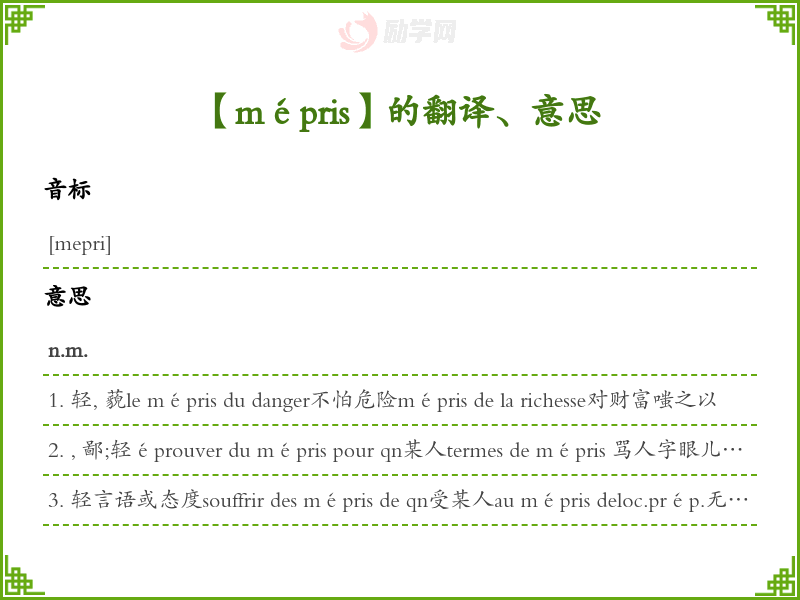 mépris法语的中文翻译、意思