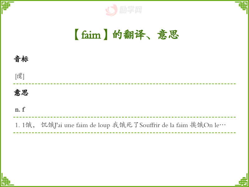 faim法语的中文翻译、意思