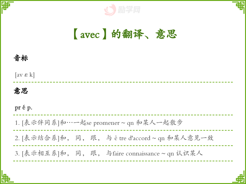 avec法语的中文翻译、意思