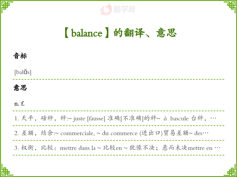 【balance】 联想: 形容词变化: 近义词: 联想词