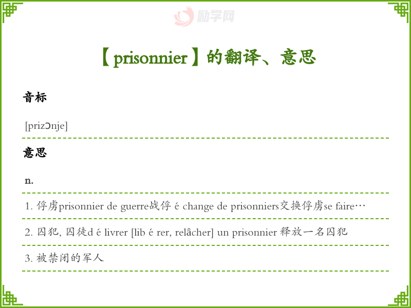 【prisonnier】是什么意思、字义解释