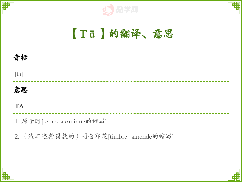 Tā法语的中文翻译、意思