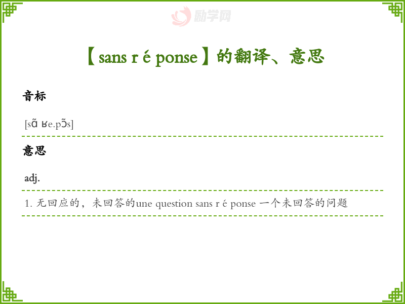 1. 无回应的,未回答的une question sans réponse 一个未回答的问题