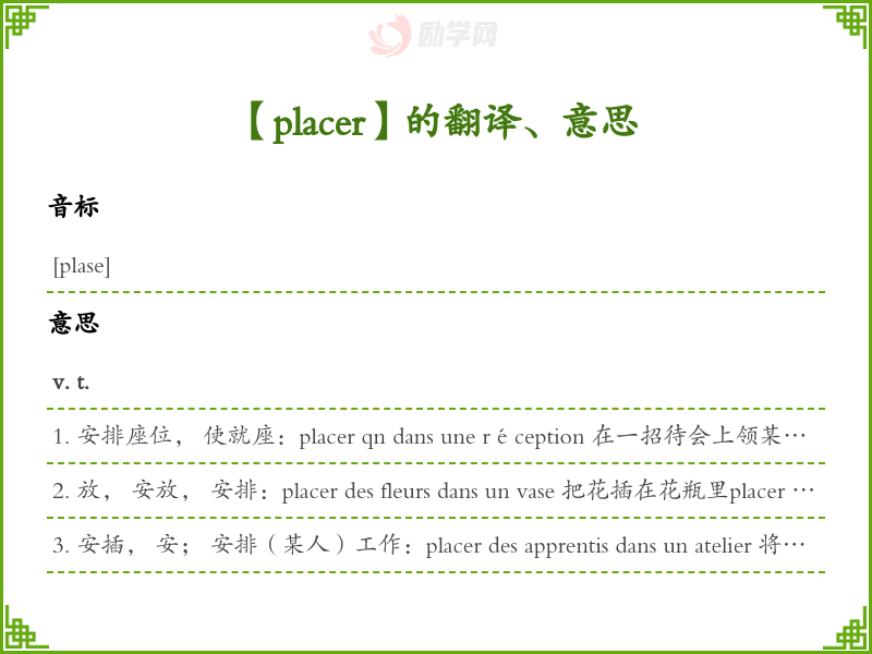 placer法语的中文翻译、意思