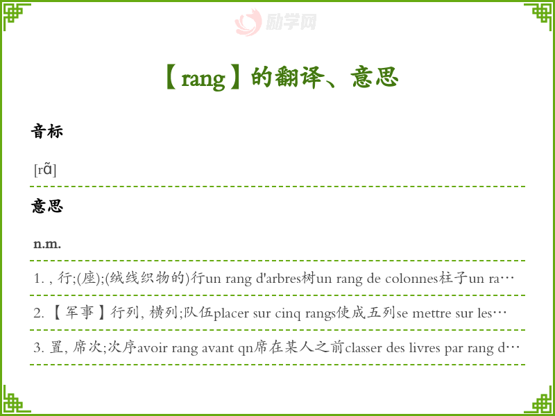 rang法语的中文翻译、意思