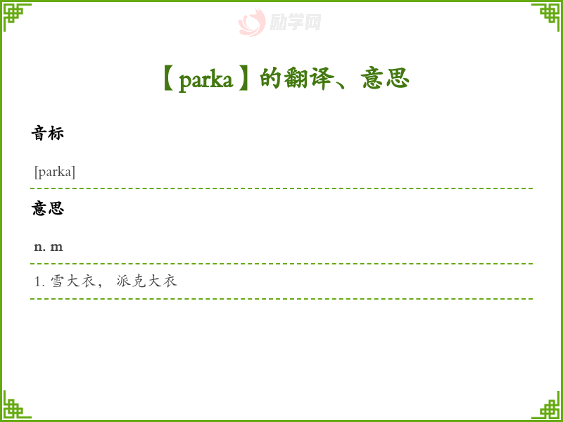 【parka】是什么意思、字义解释