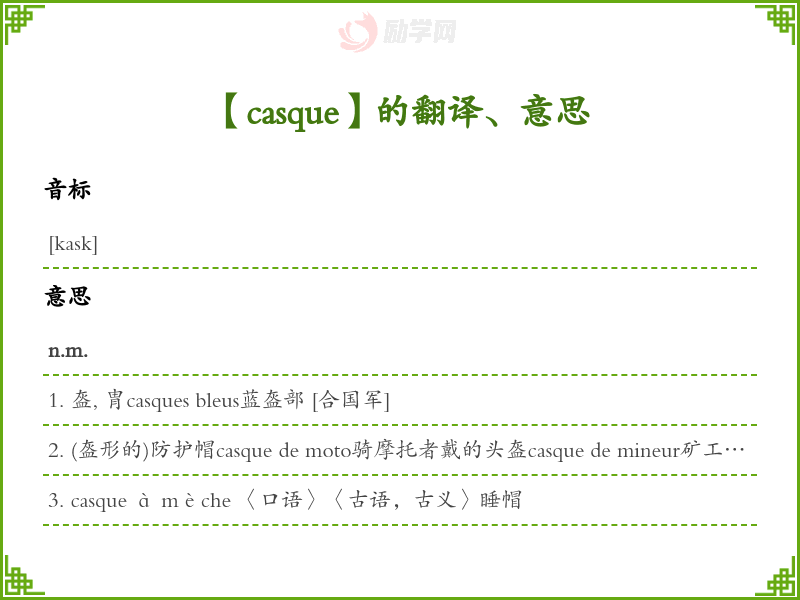 【casque】是什么意思、字义解释