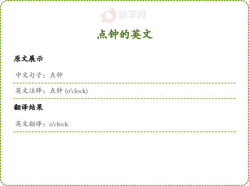 英文注释:点钟 (o'clock)