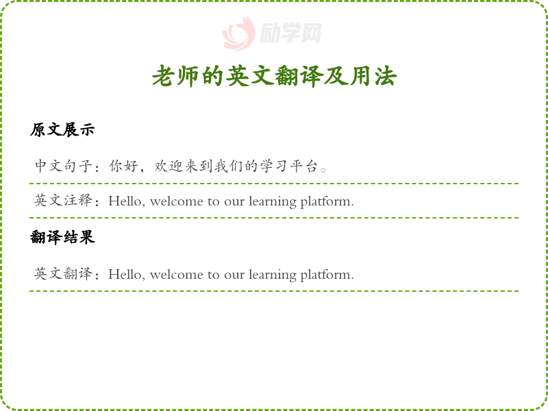 老师的英文翻译及用法